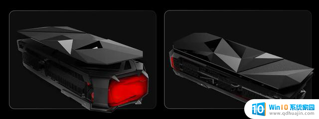 该显卡在常规 RX 9070 XT“红魔”的基础上提供了一块可磁吸在原装金属背板上的 Onyx Devil Skin 额外背板。Onyx 背板以棱角凸起为主体元素,在靠近尾部的原装背板灯效区对应位置作镂空处理。